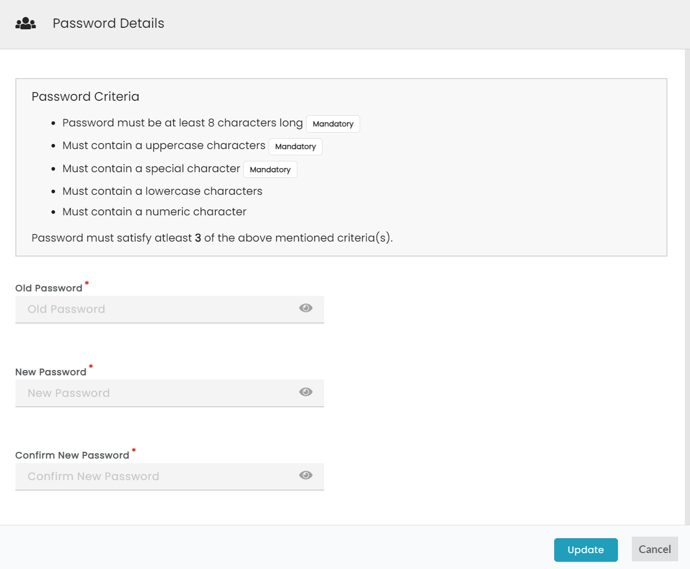 Only native users can update their profile details. For LDAP users, the details must be updated in the directory.