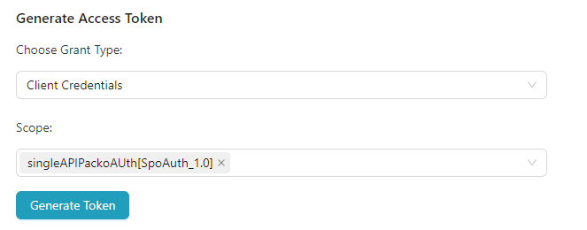 If Grant Type is selected as Client Credentials the method for Generate Access Token is given below.