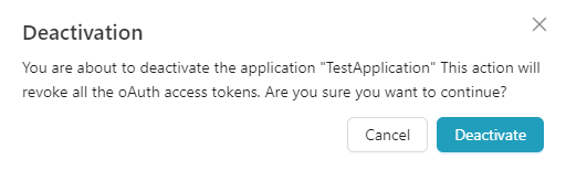 An approval request is sent to the publisher user. The publisher user can either accept or reject the request to deactivate the application. If the publisher user approves the request, the application status will change from active to inactive and vice versa. If the publisher user rejects the request, the application's status will stay unchanged.