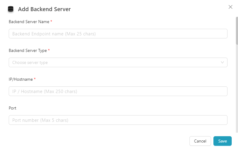 Select Backend Server Type as Production or Sandbox from the drop down.