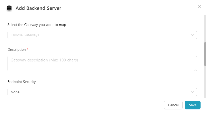 If the Backend Server Type is selected as Production, only the production gateway's will be displayed for mapping and if Backend Server Type is selected as Sandbox, only the sandbox gateway's will be displayed for mapping.