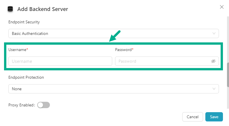 - When Endpoint Security is set to None or Passthrough, the Username and Password fields are unavailable.