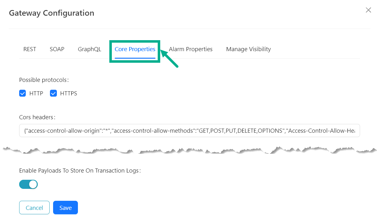 - Enable/disable the Enable Payloads To Store On Transaction Logs toggle as per the requirement.
