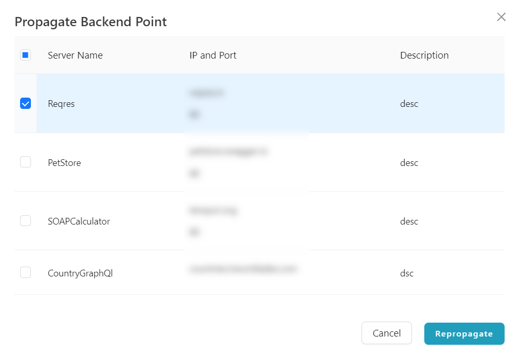 The Backend Point tab lists all the Backends associated with the specific Gateway.