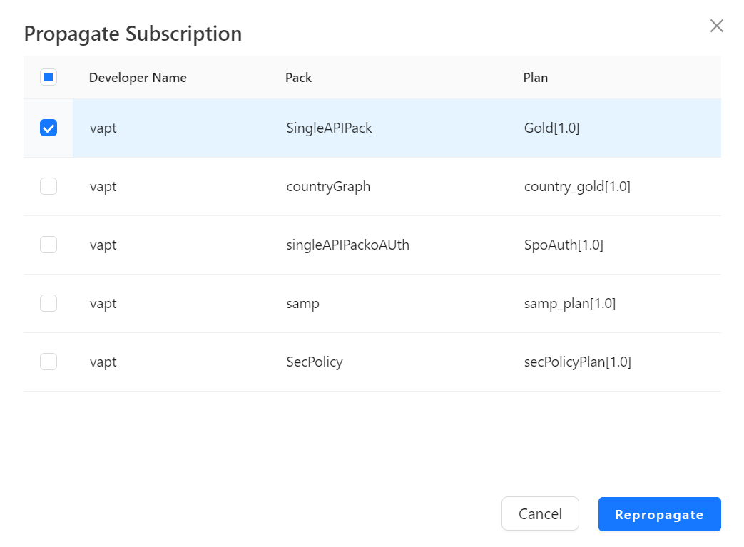 The Subscription tab displays all the mapped subscriptions to the specific Gateway.