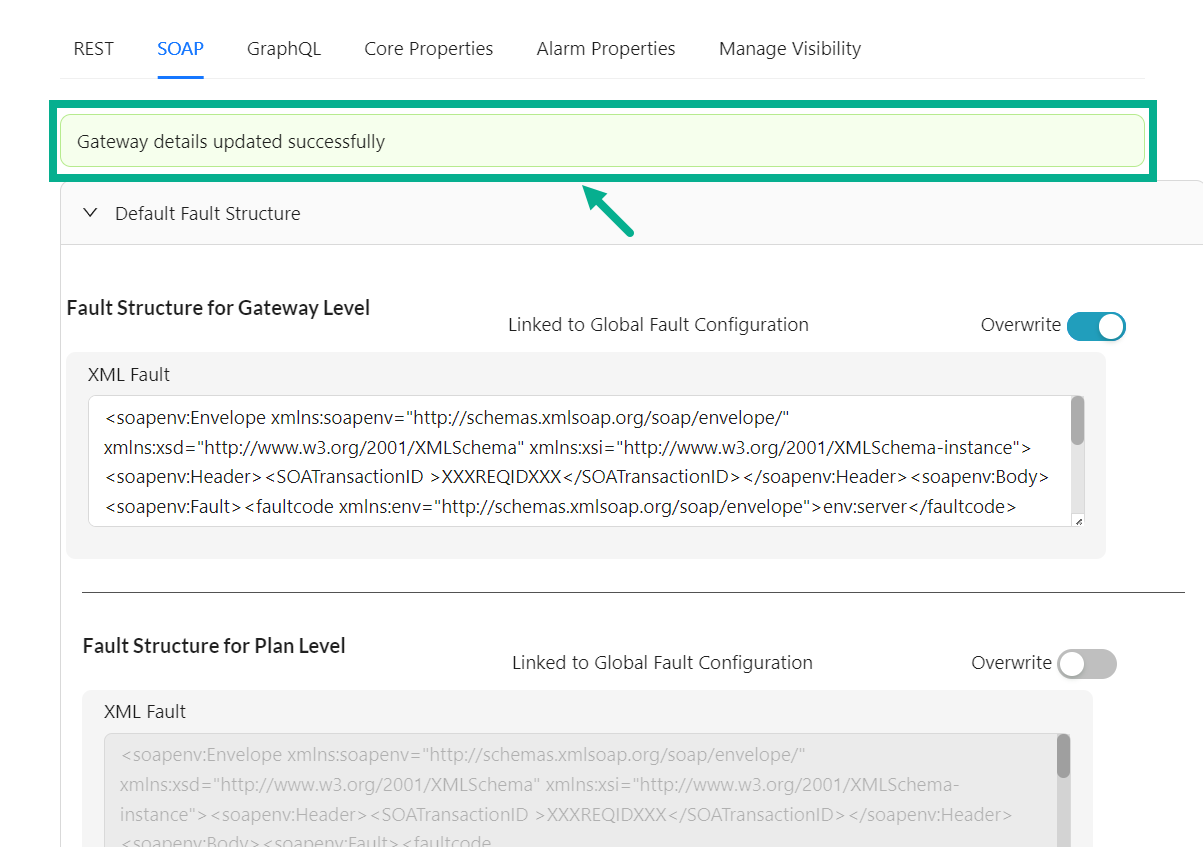Update the XML Fault at Gateway/Plan/Operation Levels.
